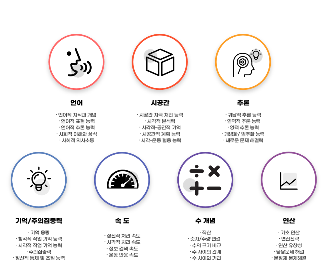 • 일상생활과 학습에 영향을 주는 여러 인지 능력 중